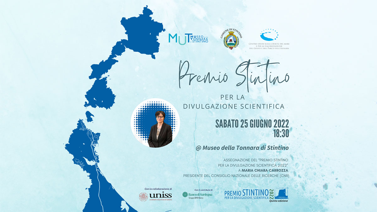 Il 25 giugno alle 18:30 il MuT – Museo della Tonnara di Stintino ospiterà la quinta edizione del “Premio Stintino per la divulgazione scientifica”, che quest’anno sarà assegnato dal Comitato scientifico, presieduto da Piero Cappuccinelli, professore emerito dell’Università di Sassari e Accademico dei Lincei, a Maria Chiara Carrozza, prima donna eletta alla carica di presidente del Consiglio Nazionale delle Ricerche (CNR).