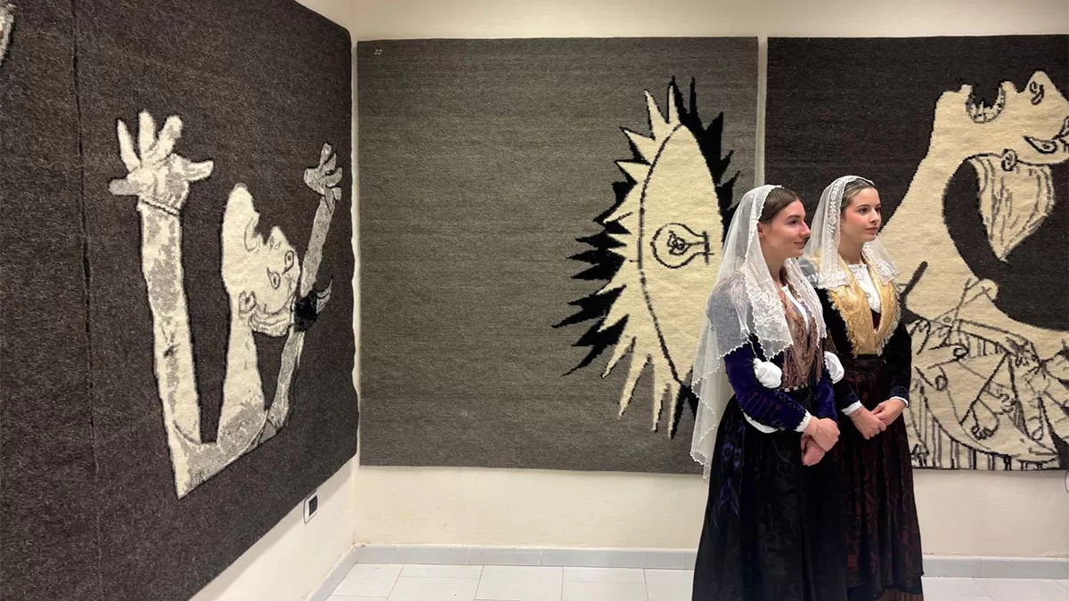 La mostra, inaugurata il 20 settembre, nasce dalla direzione creativa dello studio Pratha di Graziella Carta e dal lavoro di un gruppo di tessitrici che, per cinque mesi, hanno utilizzato il telaio e la lana grezza per dare forma a otto tavole ispirate al capolavoro di Picasso. Le riproduzioni in orbace restituiscono l’impatto visivo e simbolico dell’opera originale, trasportandone i segni e le tensioni nel linguaggio della tradizione sarda.