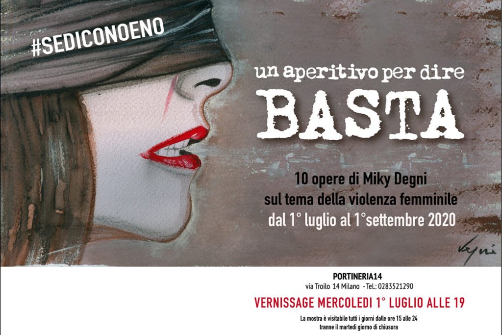 Il 1° luglio inaugura a Milano, presso la Portineria 14, l’esposizione di Miki Degni “10 Motivi per dire: Basta!” una mostra dedicata a ritratti femminili dipinti col vino. Le particolari opere saranno esposte fino al 1° settembre.