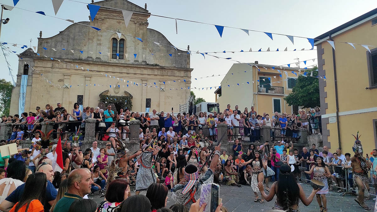 Intermezzo col gruppo Nostra sennora ‘e Itri di Maracalagonis dove anche gli abiti maschili sono ricchi di gioielli e quindi nuovo tuffo in Sudamerica con il gruppo di San Pedro Sula dell’Honduras caratterizzato dai colori sgargianti del costume femminile che riprendono quelli degli uccelli. Le maschere tradizionali di Donna Zenobia di Macomer (abiti poveri e neri con bastone reso sonante da alcuni campanacci) e poi il ballo del Gruppo Folk Figulinas di Florinas. Dal ballu tundu all’haka maori del gruppo Taumata Whitireia (Nuova Zelanda) e quindi il rito pagano di sa Vargia de Oniferi.