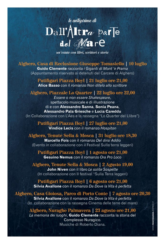 “Dall’Altra parte del Mare” è organizzato dall’Associazione Itinerandia con la collaborazione della Libreria Cyrano e il patrocinio e il sostegno delle Amministrazioni comunali di Alghero e Putifigari e della Fondazione Meta.