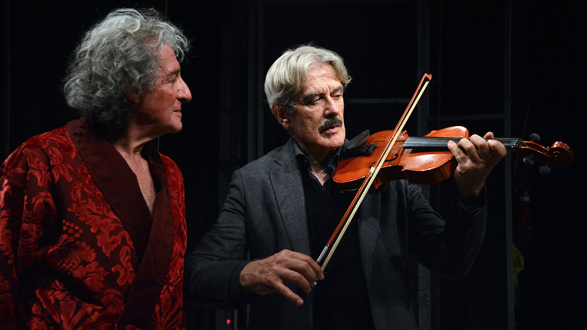 La tragedia della Shoah rivive, quasi inaspettatamente, in “Nota Stonata” (Fausse Note) dell’attore e drammaturgo francese Didier Caron, un moderno Kammerspiel nell’interpretazione di Giuseppe Pambieri e Carlo Greco per la regia di Moni Ovadia in cartellone venerdì 26 novembre alle 21 al Teatro del Carmine di Tempio Pausania, sabato 27 novembre alle 21 al Padiglione Tamuli delle ex Caserme Mura di Macomer e infine domenica 28 novembre alle 20:45 al Teatro Centrale di Carbonia sotto le insegne della Stagione di Prosa 2021-2022 organizzata dal CeDAC / Circuito Multidisciplinare dello Spettacolo dal Vivo in Sardegna per una riflessione sul senso della storia. Un celebre direttore d’orchestra, artista estremamente esigente, conosciuto e temuto per il suo temperamento sulfureo oltre che per la passione e il talento, incontra nel camerino, al termine di un concerto, un sedicente ammiratore: il consueto rito dei complimenti e degli autografi si trasforma gradualmente, attraverso un dialogo enigmatico e ricco di sottintesi, in una situazione molto più inquietante, quasi un appuntamento con il destino.