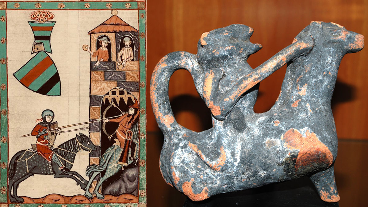 La mostra si articola in memorie archeologiche, letterarie, di pittura e scultura sulla maestria di cavalieri (dal cavaliere fenicio di un piccolo otre in ceramica di Tharros, della collezione Cominacini, ai cavalieri che si scontrano in una giostra nel rilievo del XII secolo del San Lussorio di Fordongianus). Perché c’è davvero un’archeologia della Sartiglia che arriva al Medioevo nei Comuni d’Italia ma anche di Sardegna.