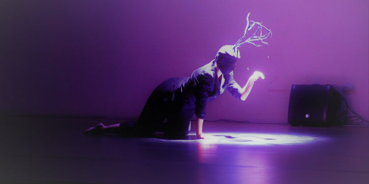Nell’evoluzione drammaturgica, i semi presenti nelle mani della danzatrice sono cresciuti e sono diventati un albero che ricopre il volto dalla protagonista, a simboleggiare la crescita e la continuità della vita.