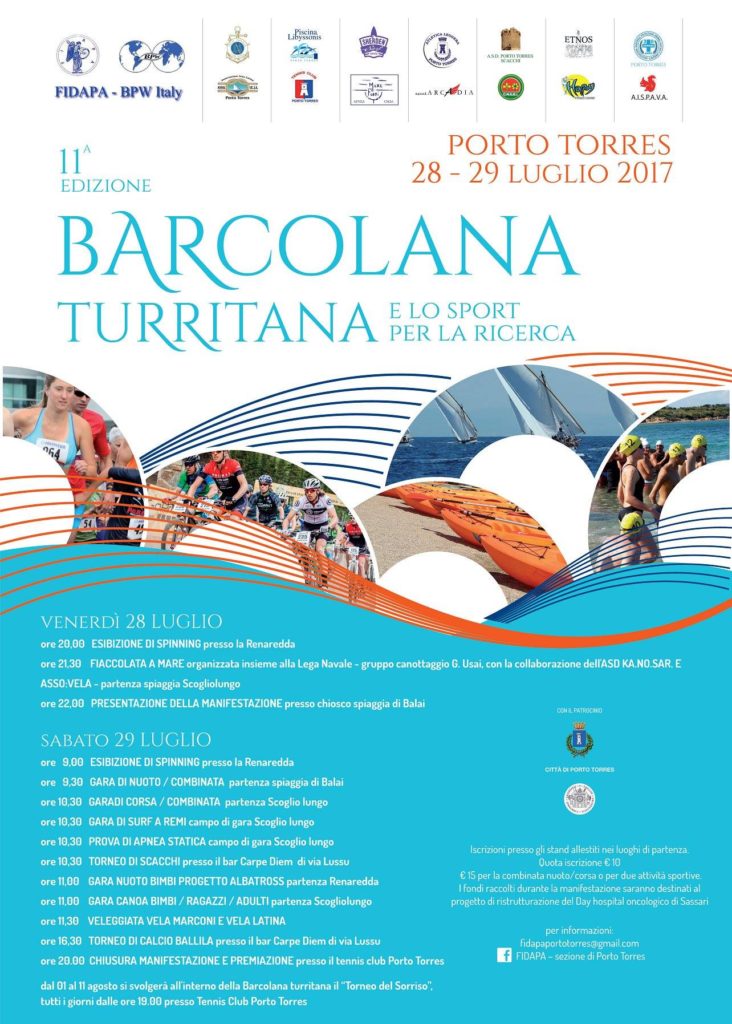 Le associazioni e imprese partecipanti saranno Lega navale italiana, Asso.ve.la, Libyssonis nuoto, Tennis club Porto Torres, Sherden surf house, Mare di fuori, Atletica leggera Porto Torres, Spssd Arcadia, Asd Porto Torres Scacchi, Scout Cngei, Etnos, Happy Fitness center, Anpana, Aispava e Turris Bisleonis. La Presidentessa della Fidapa, Marinella Osilo, dopo aver ringraziato le associazioni e le istituzioni che stanno collaborando, ha ricordato che «l’evento sarà aperto venerdì dalla suggestiva fiaccolata sul mare, in canoa, da Scogliolungo a Balai, e rimarrà aperta per l’occasione anche la caratteristica chiesetta. La Barcolana nasce in memoria della nostra socia Elisabetta Fara. Quest’anno i fondi non saranno destinati ad un progetto di ricerca, ma verranno utilizzati per il Day Hospital oncologico di Sassari, sostenuto dall’associazione “Mariangela Pinna”». «Complimenti alle associazioni che si stanno unendo per questo scopo – ha affermato l’Assessora Nuvoli – e alla Fidapa che con grandi sforzi dà continuità a questo evento da tanti anni. È lodevole l’attività dell’associazione che sta svolgendo azioni di sensibilizzazione a favore del Day Hospital oncologico e non ci poteva essere scelta migliore del progetto al quale destinare i fondi della Barcolana 2017». L’iscrizione agli appuntamenti sportivi si potrà effettuare negli stand allestiti nei siti di partenza, ma potranno contribuire anche i cittadini che non parteciperanno alle gare.