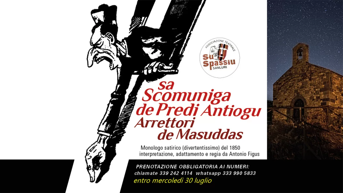 Al centro dell’evento, la messa in scena della commedia “Sa scomuniga de predi Antiogu arrettori de Masuddas”, opera anonima dell’Ottocento, rappresentativa della realtà sociale e religiosa di un piccolo paese di campagna. La trama ruota attorno al parroco locale, che dopo l’abolizione delle decime si ritrova a vivere del poco bestiame in suo possesso. Quando gli animali gli vengono rubati e i colpevoli restano ignoti, decide di scomunicare l’intera comunità, accusata di complicità e silenzio.