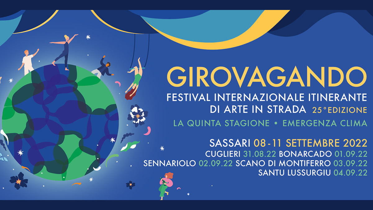 Theatre en vol, compagnia di teatro urbano di Sassari, da oltre 30 anni lavora nella convinzione che il teatro abbia proprio questo compito. Lo fa con maturità, la consapevolezza la sensibilità e l’estro di cui l’artista è custode e massimo interprete. Girovagando sarà cammino d’arti e d’arte e d’artisti, un viaggio immersivo nel bruciante problema del cambiamento climatico affrontato attraverso il linguaggio del Climate Change Theatre Action, della musica e delle arti performative fra spettacoli, incursioni teatrali, performance itineranti, installazioni artistiche, concerti e laboratori per adulti e bambini