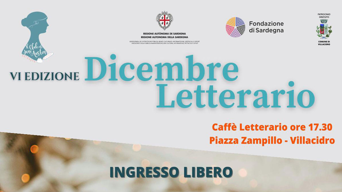 Il Club di Jane Austen Sardegna chiude il 2021 con la VI edizione del Dicembre letterario, che torna in presenza dove tutto ha avuto inizio, Villacidro. «Quest’anno abbiamo predisposto un programma con tre appuntamenti interamente dedicati ai libri – afferma Giuditta Sireus, direttrice artistica del Club –. L’associazione aveva piacere di riproporre il suo progetto di chiusura dell’anno lavorativo e rinnovare l’impegno nella promozione della lettura soprattutto a Villacidro, dove il Club è nato».