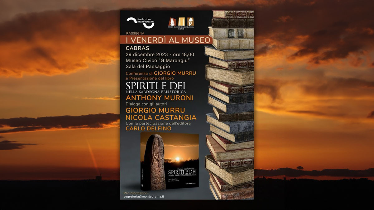 Si terrà venerdì 29 dicembre, alle 18 a Cabras, nella Sala Paesaggio del Museo Civico Giovanni Marongiu, la presentazione del libro di Giorgio Murru e Nicola Castangia “Spiriti e Dei nella Sardegna preistorica”, edito da Carlo Delfino Editore.