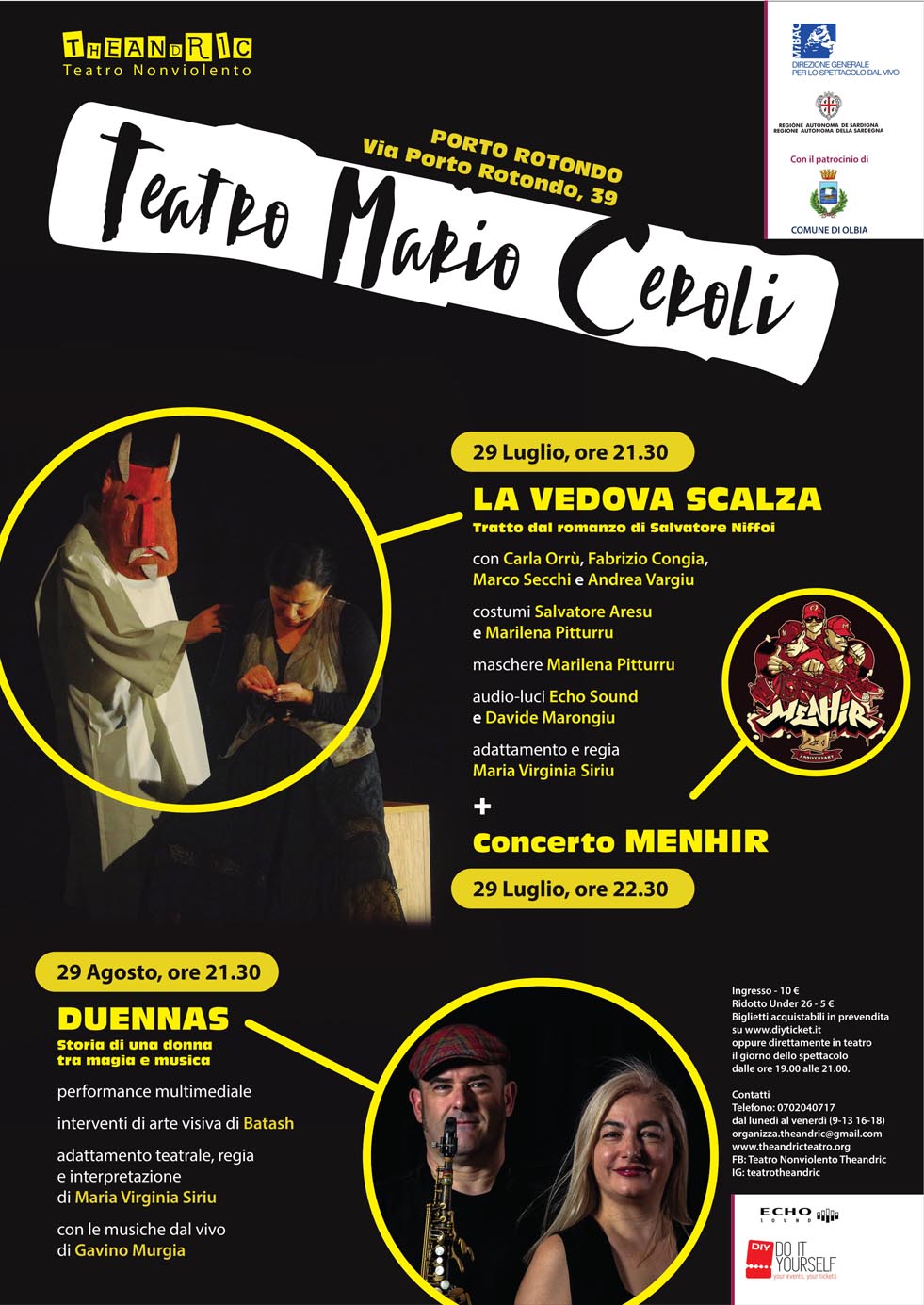 La rassegna al Teatro Mario Ceroli è organizzata da Theandric Teatro Nonviolento con il sostegno del MiBAC e della Regione Autonoma della Sardegna (Assessorato della pubblica istruzione, beni culturali, informazione, spettacolo e sport) e il patrocinio del Comune di Olbia.