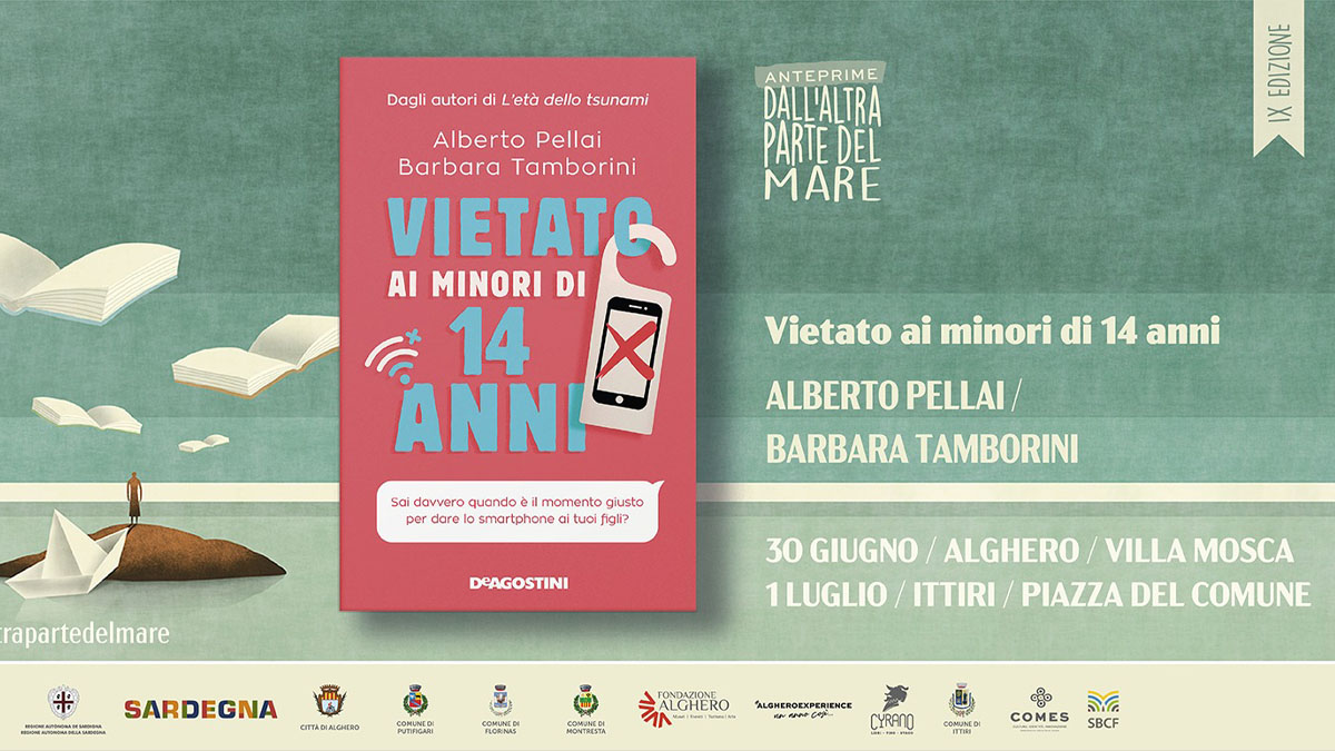 Ad Alghero e Ittiri doppio appuntamento con Alberto Pellai e Barbara Tamborini. Giovedì 30 giugno, ad Alghero (Villa Mosca ore 19:30) e venerdì 1° luglio a Ittiri (Piazza del Comune ore 19:00) i due autori saranno ospiti del festival Dall’altra parte del mare per conversare con il pubblico del loro attualissimo “Vietato ai minori di 14 anni” (De Agostini) il libro sull’utilizzo degli smartphone da parte dei bambini.