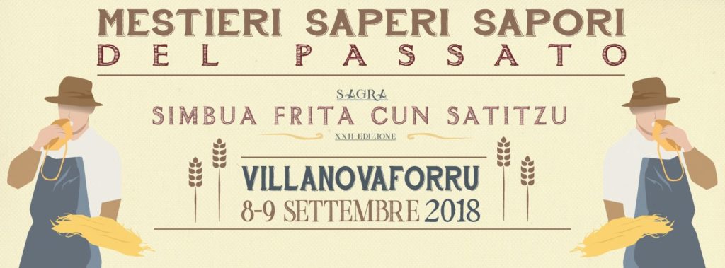 Gastronomia, cultura, arte, tradizioni e musica l’8 e il 9 settembre a Villanovaforru con Mestieri, saperi e sapori del passato Villanovaforru e immancabile appuntamento con la XXII edizione della sagra “Simbua Frita cun Satitzu” che ha ottenuto dal Ministero delle Politiche Agricole italiano il riconoscimento di prodotto agro-alimentare tradizionale della Sardegna e, in particolare, del territorio del paese. Ecco il programma definitivo.