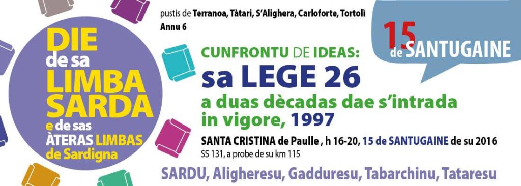 Quale migliore occasione, dunque, di questa Giornata per parlare, a quasi 20 anni dalla sua entrata in vigore, della LEGGE 26, dei suosi pregi e difetti, delle prospettive che ha aperto per la tutela e la promozione del sardo e della diversità linguistica della Sardegna?