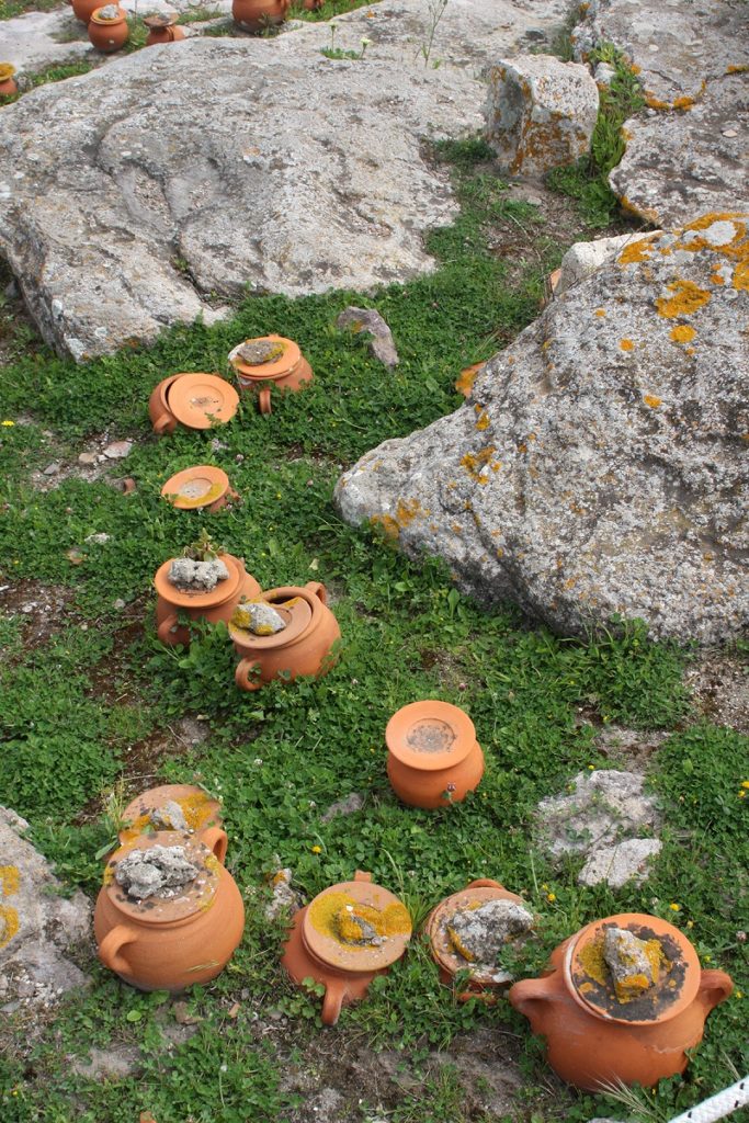 Lo affidavano al sacerdote affinché si svolgesse il rituale della cremazione. Il piccolo cadavere veniva bruciato su una pira cosparsa di olio e unguenti, veniva raccolto nell’anfora insieme a piccoli oggetti da corredo o amuleti e collocato tra le rocce.