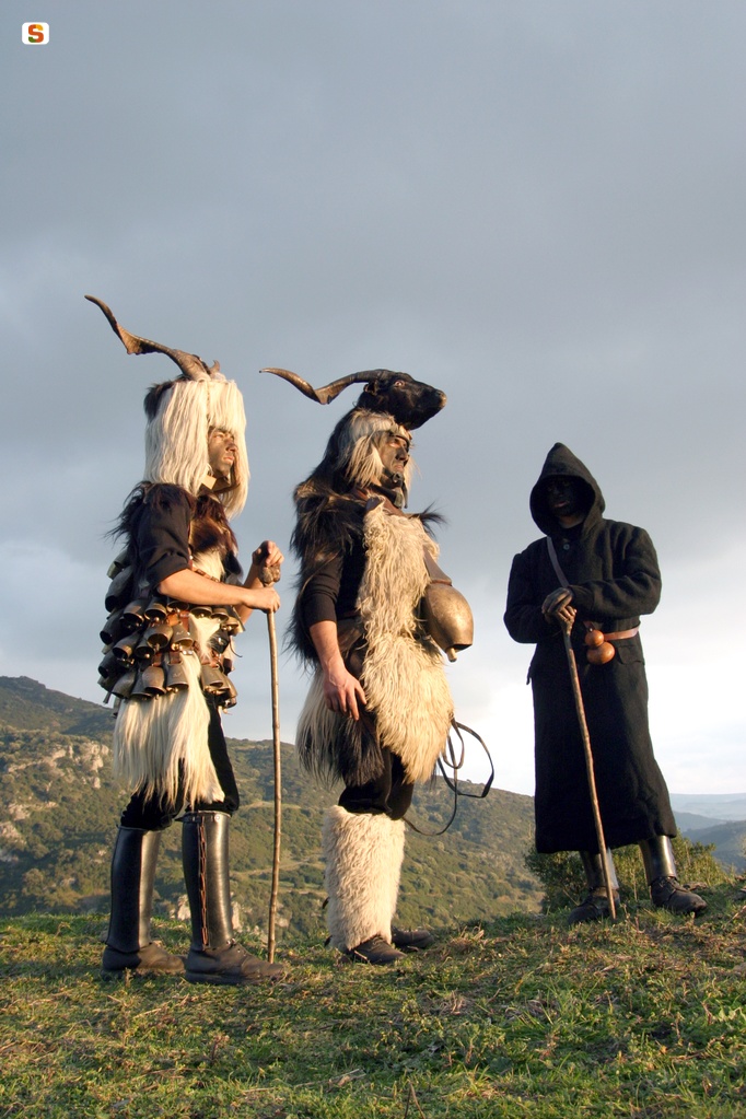 Il Carnevale (A Maimone). Il fascino maggiore viene assunto da Samugheo in un periodo in particolare dell’anno, quando cioè i riti pagani prendono il sopravvento, quando i balli e il frastuono dei campanacci rendono tutti euforici. Le maschere si ispirano agli ambienti agro-pastorali, oltre che religiosi e il rito è incentrato su una processione di danze disordinate e coinvolgenti. Sos Mamutzones, personaggi che nascondono le sembianze umane sotto strati di pelli di capra e volti ricoperti di fuliggine, procedono a sbalzi, facendo rintronare sas campaneddas e sos trinitos del loro costume e inscenando le lotte tipiche degli animali in amore. In questo fragore di balli e sonagli, procedono S’Urtzu, la vittima della rappresentazione, e S’Omadore, la figura del pastore. S’Urtzu è coperto di pelli caprine nere, arranca e cade continuamente mentre s’Omadore lo percuote e lo pungola. Grazie a una vescica piena di sangue e acqua che s’Urtzu nasconde sotto le vesti, la scena delle percosse da parte di s’Omadore è realistica e spettacolare.