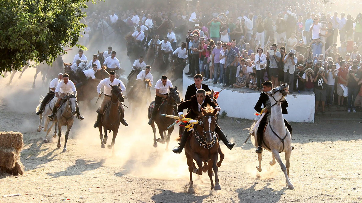 Sgargianti abiti tradizionali, sfilate a cavallo e solenni processioni. Questi elementi ricorrono spesso nelle feste religiose sarde, da sempre punti nevralgici dell’identità isolana, ciascuna declinata secondo la tradizione del proprio paese. Ogni occasione sacra infatti segue peculiari usanze e modalità, che danno vita ad un ricco e sfaccettato panorama regionale. Impregnato di fervente devozione, il fenomeno coinvolge centri popolosi come Sassari, – sede della Discesa dei Candelieri nel mese di agosto – ma anche abitati più piccoli come Sedilo (OR), che ogni anno ospita l’Ardia di San Costantino.