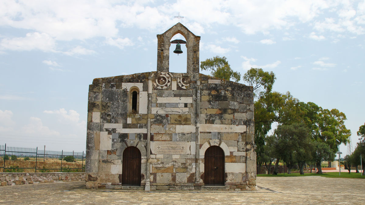 Nata da pietra calcarea, la chiesa di San Platano porta ancora oggi visibili le volontà dei monaci francesi, a partire dalla decisione di utilizzare materiali di reimpiego provenienti dal vicino sito romano di San Cromazio. Scoperto fortuitamente nel 1973 e ad oggi area archeologica, esso possiede a sua volta una preziosa storia riemersa dal ritrovamento di monili, tombe, lucerne e meravigliosi mosaici, tra i quali è possibile osservare anche l’esemplare più vasto di tutta la Sardegna. Costituito da molteplici cromie per un’ampiezza di 160 metri quadrati, si ritiene che quest’ultimo fosse in passato adibito a pavimento di una chiesa, costruita nel IV d.C. su resti di uno spazio termale di 2 secoli prima e contenente numerosi riferimenti al cristianesimo, come la spiga di miglio e il vaso con vino detto “Kantharos”.