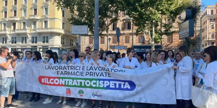 (Adnkronos) – Camice bianco, cartelli e bandiere. I dipendenti delle farmacie di Roma e del Lazio in piazza a Roma per la prima protesta e il primo sciopero nella Capitale. “Una paghetta paternalistica da parte di Federfarma nei confronti dei lavoratori delle farmacie, è una vergogna e ci sentiamo umiliati. Per questo siamo oggi in piazza a Roma”. Così i sindacati dei dipendenti delle farmacie in protesta a Roma sotto la sede di Federfarma in piazza San Giovanni.