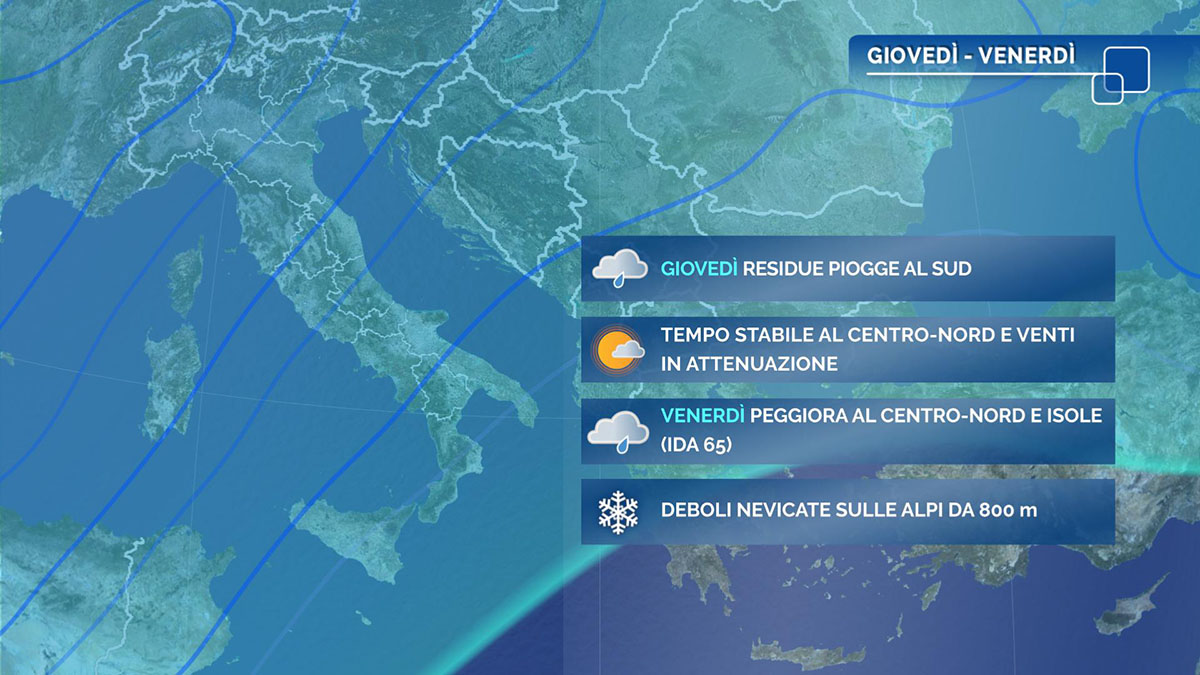 Le previsioni per domani, venerdì 2 dicembre