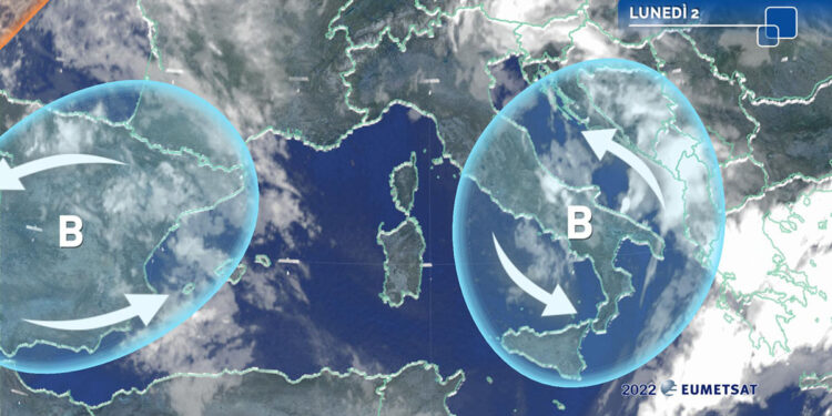 La nuova settimana inizia con una giornata di lunedì all’insegna dell’instabilità atmosferica causata dalla presenza di una debole circolazione di bassa pressione posizionata sull’Italia centro-meridionale. Il nucleo di aria più fredda in quota sarà all’origine dello sviluppo di rovesci o temporali che potranno coinvolgere molte regioni, principalmente le zone montuose del Nord e le aree interne del Centro-Sud.