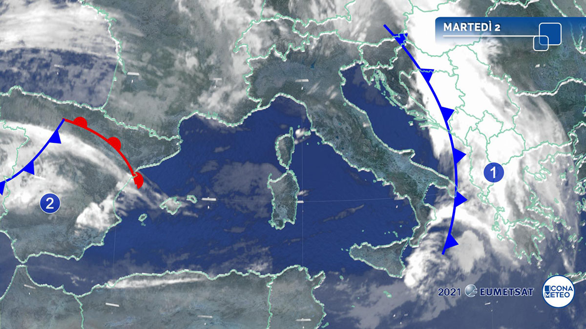 L’intensa perturbazione transitata ieri sull’Italia si è allontanata verso est, in direzione della Penisola balcanica, e oggi concederà un generale miglioramento delle condizioni meteorologiche.