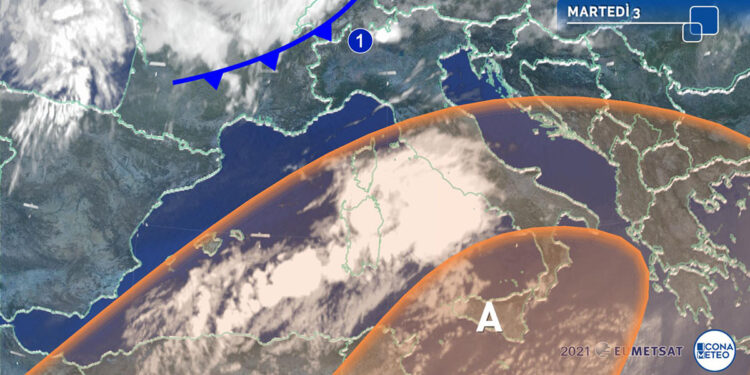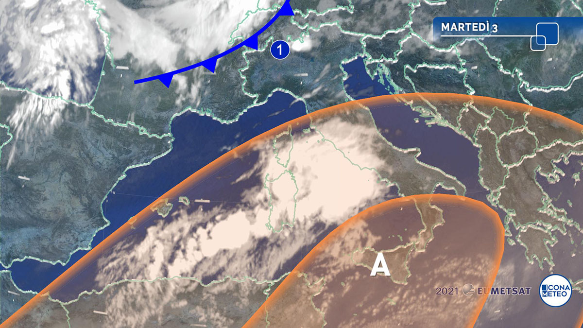 Domani una perturbazione più intensa raggiungerà il Nord Italia: in arrivo piogge e temporali diffusi e localmente intensi, soprattutto sulle aree alpine e sulle fasce di alta pianura del Nord-Ovest. Al Sud e in Sicilia si assisterà invece a una temporanea intensificazione del caldo. Tra la notte ed il mattino di giovedì il sistema perturbato coinvolgerà più direttamente le regioni di Nord-Est e marginalmente l’Italia centrale.