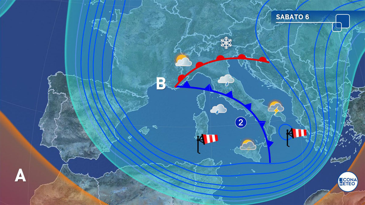 Il giorno dell’Epifania (sabato 6 gennaio) sarà caratterizzato dal passaggio di un’intensa perturbazione che raggiungerà l’Italia il 5 gennaio. Il sistema perturbato darà vita a un profondo vortice ciclonico, causando maltempo diffuso e venti molto forti. Le raffiche potranno raggiungere i 100 km/h nelle zone più esposte. Dopo giornate di relativa calma meteo le Alpi vedranno finalmente il ritorno della neve, con nevicate copiose previste specie tra venerdì 5 e sabato 6.