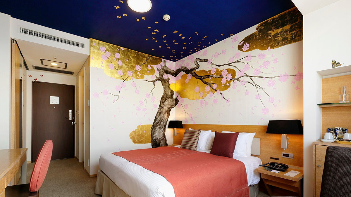 Quando si tratta di pernottare a Tokyo, esistono strutture per tutte le esigenze e tutti le tasche. Per diversificare l’offerta, alcuni hotel propongono attività e servizi di stampo culturale. Presso il Park Hotel Tokyo, le camere d’albergo diventano opere d’arte. Nei mesi scorsi è stata completata l’Artist Room Kusabana di Nobuko Numano. L’artista ha scelto di dipingere le pareti e gli elementi di arredo della camera con piante e fiori, per invitare l’ospite a soffermarsi davanti alla loro bellezza, che, seppur ordinaria, è da sempre parte della sensibilità estetica giapponese, basti pensare agli stemmi di famiglia e ai motivi dei kimono.