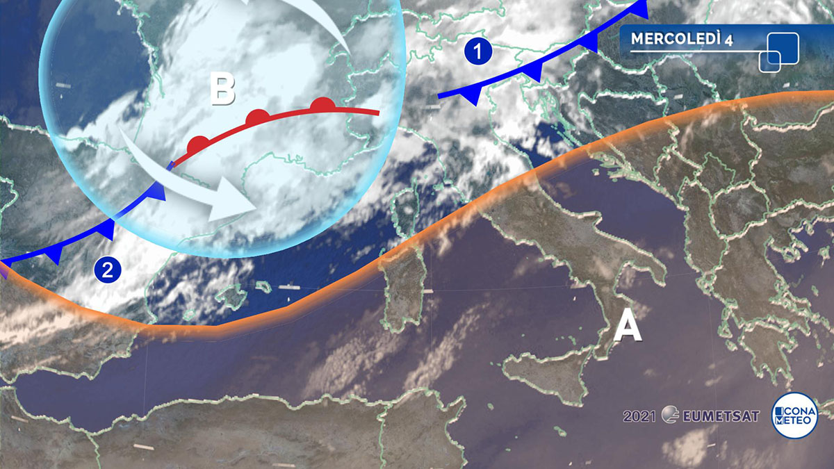 Un’altra attiva perturbazione sta raggiungendo il Nord Italia, dove nel corso della giornata favorirà piogge diffuse, soprattutto sulle aree alpine e sulle fasce di alta pianura del Nord-Ovest; al Sud e in Sicilia si assisterà ad una temporanea intensificazione del caldo. Tra la notte e la prima parte di domani, il sistema perturbato coinvolgerà più direttamente le regioni di Nord-Est e marginalmente l’Italia centrale.