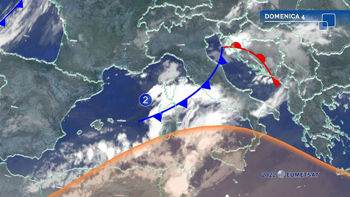 Temperature stazionarie o in leggero aumento. Clima estivo con valori generalmente al di sopra della norma, fino a 30-31 gradi al Nord, 32-33 gradi sulle regioni tirreniche e al Sud, 34-35 gradi sulle Isole. Venti per lo più deboli, con rinforzi di Scirocco sul Canale di Sicilia. Mari: calmi o poco mossi gran parte dei bacini; localmente mossi solo i mari intorno alla Sardegna, lo Ionio e il Canale d’Otranto.