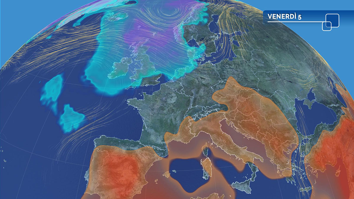 Temperature massime in diminuzione al Nord dove cessa l’ondata di calore, con il termometro non oltre i 31-32 gradi; in calo più lieve su Toscana, Umbria e Marche, stazionarie altrove con punte di 36-38 gradi nelle zone interne. Venti fino a localmente moderati settentrionali al Centro-Sud e sui mari settentrionali, deboli altrove, orientali in pianura padana; possibili raffiche improvvise nelle aree temporalesche. Mari da poco mossi a localmente mossi.