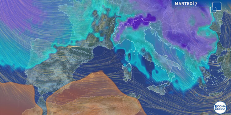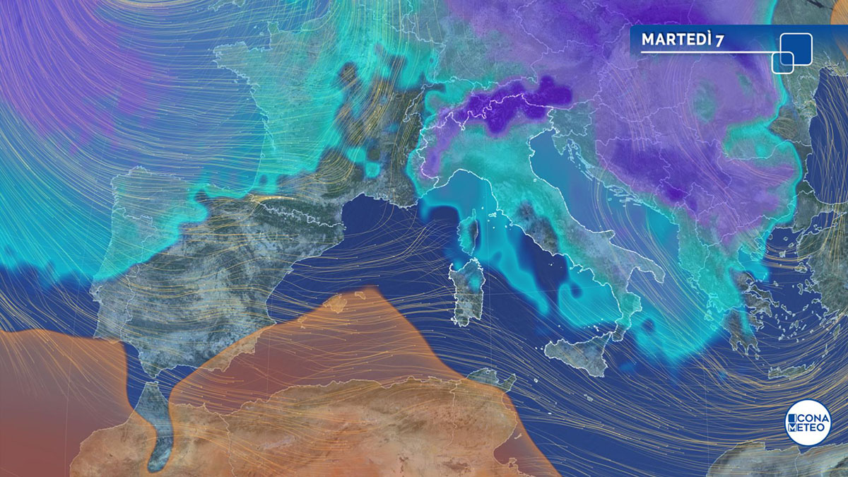 «La giornata di martedì 7 dicembre vedrà una prevalenza di sole sulla maggior parte delle regioni. Ancora un po’ di variabilità lungo le coste tra Abruzzo e Puglia, su Calabria meridionale e nord della Sicilia, dove saranno possibili residue precipitazioni. Nella notte avremo nuvolosità in aumento al Nord-Ovest e in Sardegna con le prime deboli nevicate su Valle d’Aosta, Alpi occidentali ed entroterra ligure, con il rischio di vedere fiocchi fino alle porte di Genova. I venti soffieranno intensi di Maestrale su gran parte del Centro-Sud, con raffiche di burrasca sull’Adriatico e intorno alla Sicilia. Le temperature caleranno ulteriormente su medio Adriatico e al Sud».