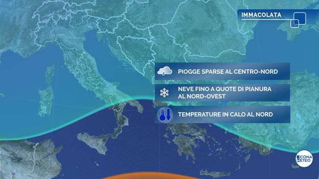 La parte centrale della prossima settimana si preannuncia ancora segnata dal maltempo di stampo invernale sull’Italia, mentre giungono conferme circa il possibile arrivo per l’Immacolata della prima neve della stagione sulle pianure del Nord, in coincidenza del passaggio di una intensa perturbazione atlantica (n.3 di dicembre). «Determinante – spiega Rino Cutuli, meteorologo di Meteo Expert e autore di IconaClima – sarà l’afflusso di aria fredda e secca atteso nei giorni immediatamente precedenti, più efficace proprio sulle regioni settentrionali, dove grazie anche al temporaneo miglioramento atteso tra lunedì e martedì vi saranno le condizioni per la formazione di un buon cuscinetto di aria fredda in prossimità del suolo, con gelate anche intense al Nord-Ovest, di notte e al primo mattino».