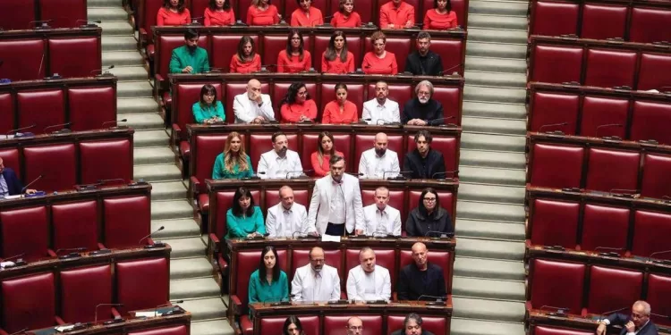 (Adnkronos) – I deputati e le deputate del M5S, in occasione del Question time alla Camera, hanno indossato in aula giacche e magliette di colore verde, bianco, rosso e nero in modo da raffigurare la bandiera della Palestina.