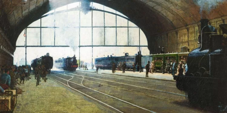 Il terzo asse di lettura affronta il tema in rapporto alla sfera sociale e antropologica, restituendo l’impatto delle ferrovie sulla vita quotidiana, sul lavoro e sul costume, la nascita di nuove professioni e la trasformazione dei ritmi e delle percezioni collettive: dall’apparizione di una nuova figura come quella del ferroviere fino al recente mutamento del concetto di distanza e all’avvento del pendolarismo di lungo raggio con l’introduzione dell’Alta Velocità. Il quarto e ultimo asse della mostra indaga l’interpretazione delle ferrovie nelle arti, nella pittura, nella fotografia, nel cinema, nella poesia e nella letteratura. Gli artisti, prima e meglio di altri, hanno saputo cogliere la complessità del fenomeno, restituendone tanto la forza innovatrice quanto le ombre, le alienazioni e le contraddizioni: nelle loro opere il treno diventa simbolo della modernità e specchio delle sue ambivalenze, immagine di progresso e di perdita, di velocità e di lontananza, talvolta luogo di sperimentazione creativa o addirittura metafora esistenziale.