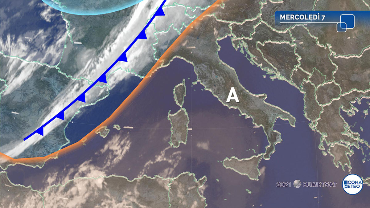 Sulla maggioranza delle regioni tempo ben soleggiato e molto caldo. Dalla tarda mattinata passaggio di strati medio-alti sulla Sardegna, e tra pomeriggio e sera, anche su gran parte delle regioni centrali, nel nord della Campania e della Puglia.