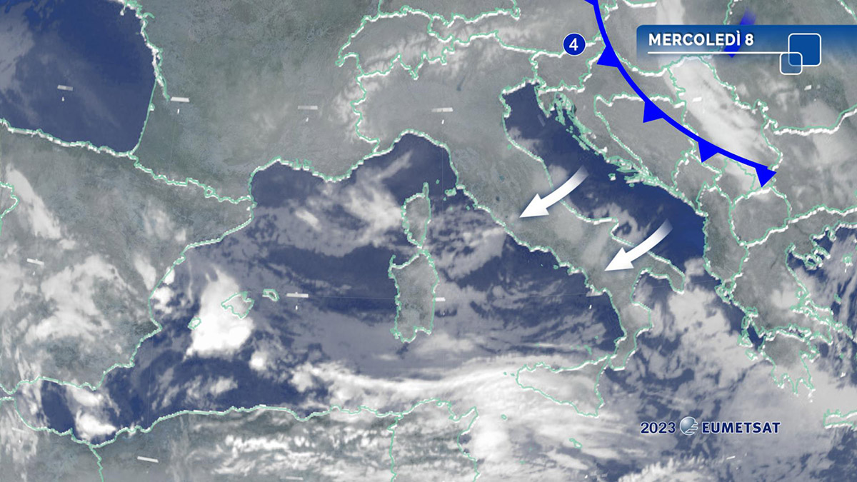 Tempo perturbato in Sicilia e nel sud della Calabria con precipitazioni sparse anche moderate, più insistenti nel settore ionico e con possibili forti rovesci in serata nel settore orientale dell’isola, e con neve sui rilievi fino ai 600-900 m; fenomeni più isolati nel nord della Calabria con neve in Sila fino ai 500 m. Prevalenza di nuvole anche sul medio Adriatico e gran parte del Sud, più compatte e associate nel corso della giornata a qualche breve e debole precipitazione su Marche, Abruzzo, Molise, Potentino e Cilento, nevosa fino ai 100-300 m. Possibili isolate precipitazioni anche in Sardegna, specie lungo il Tirreno con neve all’interno fino ai 500 m circa. Tempo più soleggiato invece sul settore tirrenico del Centro e al Nord dove qualche addensamento sarà presente solo al mattino su Prealpi lombarde, nord e ovest del Piemonte, Emilia orientale e Romagna.