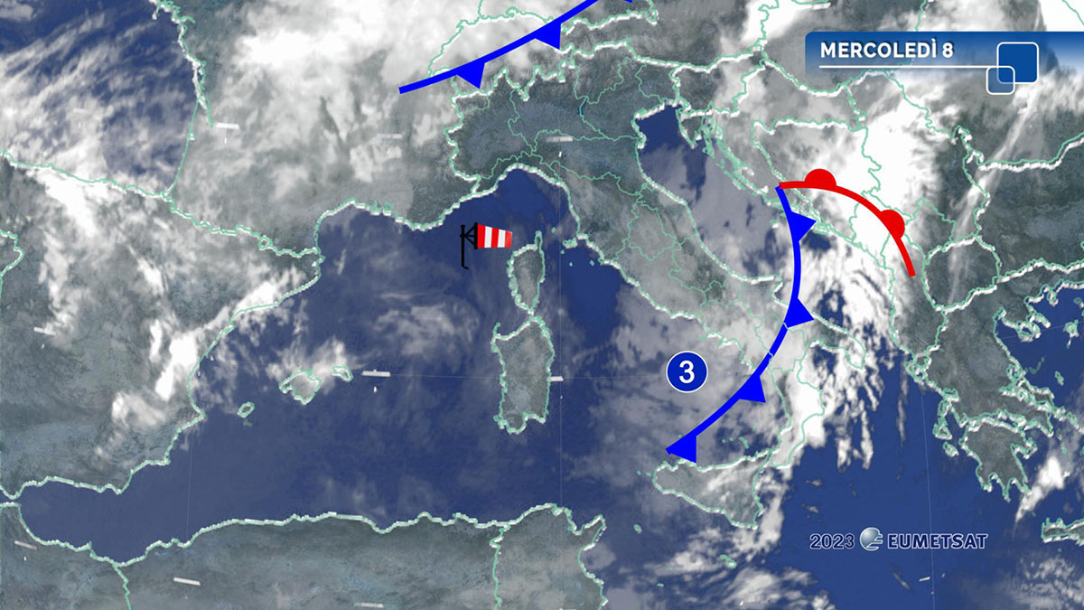 Temperature: stazionarie o in leggero rialzo nei valori minimi, in contenuto calo le massime. Clima mite in tutta Italia. Venti: da tesi a forti di maestrale sulla Sardegna, sui mari circostanti, sul mar Tirreno meridionale e sul canale di Sicilia; da moderati a tesi sud-occidentali sull’estremo Sud; deboli o al più moderati sulle regioni centro settentrionali. Mari: molto mossi o agiati i mari attorno alla Sardegna, il Tirreno meridionale ed il canale di Sicilia; poco mossi l’Adriatico, mossi o molto mossi gli altri bacini.