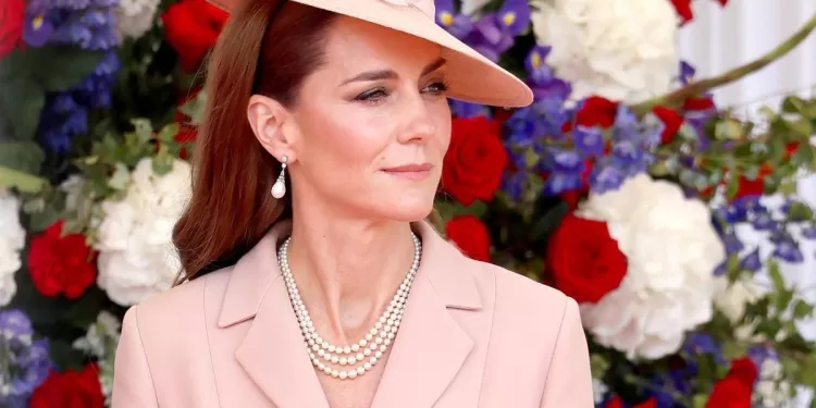 Per il suo esordio in Dior, Kate Middleton ha scelto una giacca rosa, rivisitata nel 2024 da Maria Grazia Chiuri sulla base del modello originale del 1947, e una lunga gonna di tulle dello stesso colore. A completare il look un cappellino della modista Jess Collett e i gioielli che porta spesso ultimamente: la collana di perle appartenuta alla regina Elisabetta e gli orecchini di perle con forma a goccia appartenuti a Lady Diana.