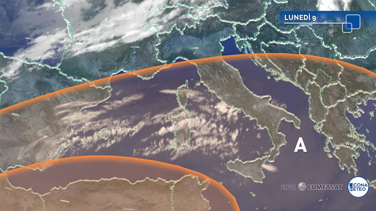 Tempo in generale soleggiato e molto caldo. Al Centro-Sud e sulle Isole il cielo sarà temporaneamente attraversato da banchi di nuvolosità medio alta, più densa in Sardegna; al Nord cielo in prevalenza sereno, salvo per lo sviluppo della nuvolosità cumuliforme sui rilievi, principalmente sulle aree alpine centro orientali, dove non si possono escludere brevi temporali isolati.