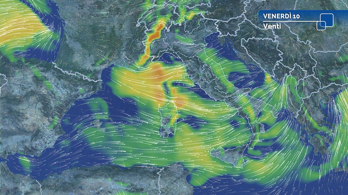 Ventoso sui mari di ponente e basso Ionio, con venti di Maestrale anche forti su Tirreno e Isole. Venti deboli al nord, sull’Adriatico e in gran parte della Penisola. Alla fine del giorno Bora in intensificazione sul medio e alto Adriatico. Mari: calmo o poco mosso l’alto Adriatico, localmente mosso il resto dell’Adriatico; molto mossi o agitati gli altri bacini. In serata moto ondoso in intensificazione anche sull’Adriatico.