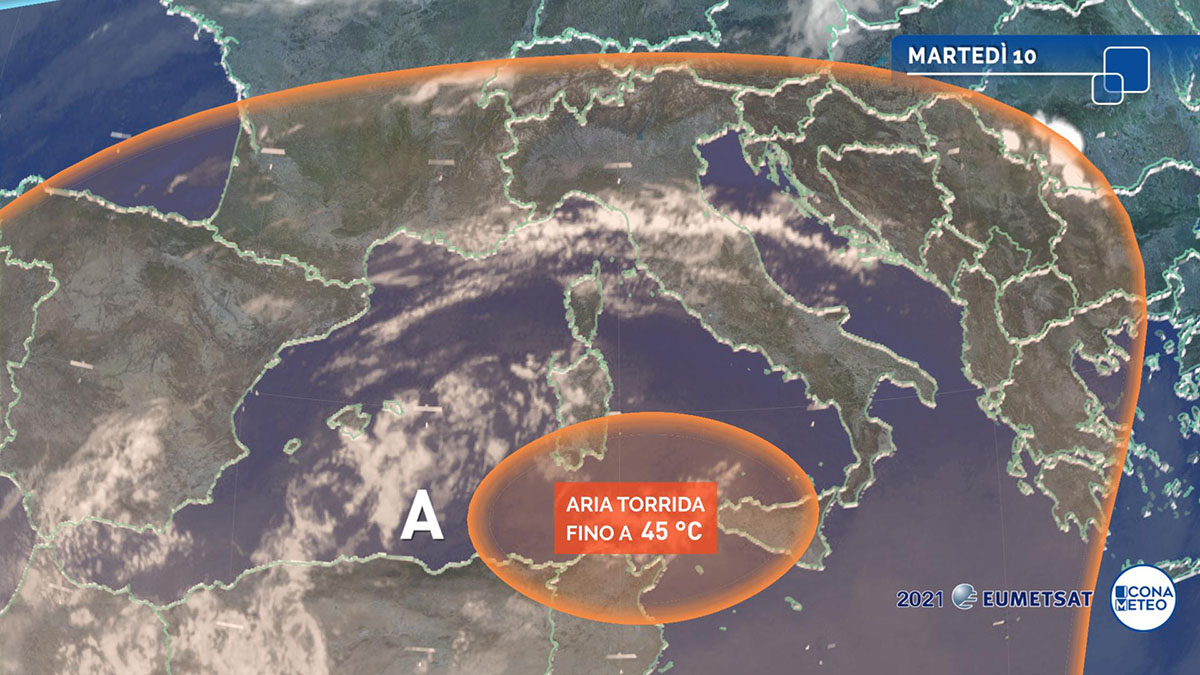 Caldo molto intenso con temperature in ulteriore aumento in gran parte del Paese. Valori estremamente elevati al Sud, in Sicilia e Sardegna con picchi anche oltre i 40 gradi e localmente fino a 45 gradi nelle zone interne delle Isole. Caldo e afa in intensificazione anche al Nord.