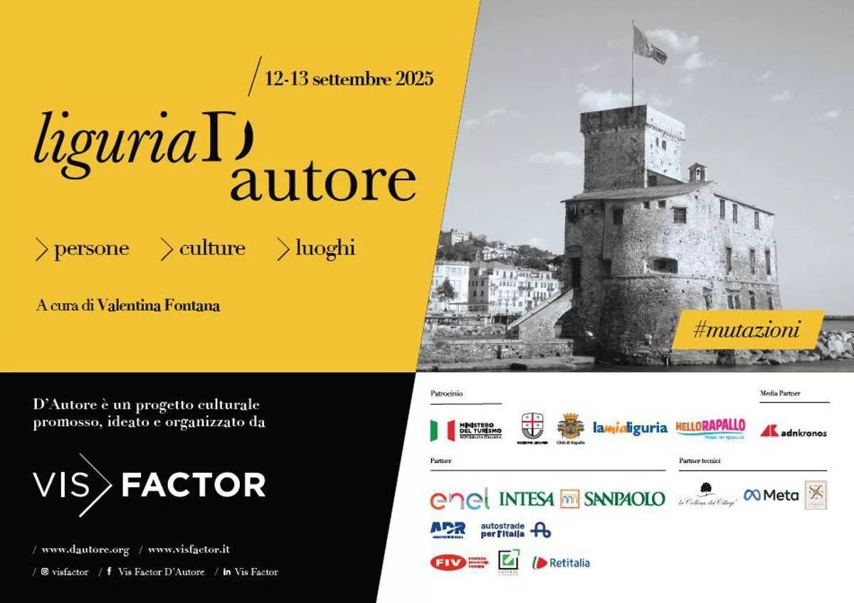 (Adnkronos) – Dopo Capri e Ponza, il viaggio di “D’Autore” approda in Liguria. Venerdì 12 e sabato 13 settembre la cornice di Villa Tigullio a Rapallo ospiterà la terza edizione di Liguria D’Autore, rassegna ideata e curata da Valentina Fontana e promossa da Vis Factor, società leader a livello nazionale nel posizionamento strategico fondata dalla stessa Fontana insieme a Tiberio Brunetti. Patrocinata dal ministero del Turismo, con il supporto della Regione Liguria e dal Comune di Rapallo, la manifestazione conferma la formula che unisce contenuti, connessioni, notizie e luoghi iconici, chiamando a raccolta leader politici, rappresentanti del mondo delle imprese, intellettuali e giornalisti per interpretare le “mutazioni” che attraversano il nostro Paese e il mondo. Non semplici cambiamenti politici o sociali, ma vere e proprie mutazioni culturali, che ridisegnano linguaggi, identità, appartenenze e nuove forme di potere