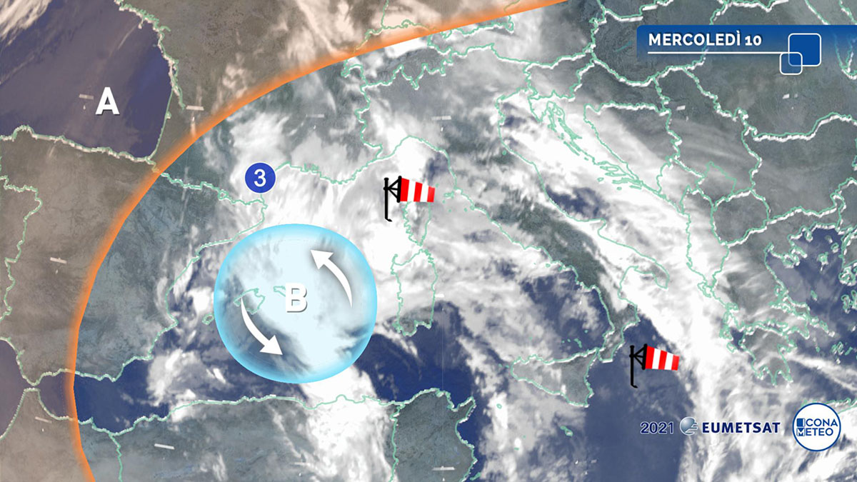 Il tempo sarà molto instabile in Sicilia con piogge localmente intense e a carattere di rovescio o temporale. Al mattino possibili rovesci isolati su alto Lazio e Toscana, piogge residue sul Piemonte occidentale, in attenuazione dal pomeriggio. Dal pomeriggio rovesci nel nordest della Sardegna. La sera di nuovo qualche pioggia nel Cuneese.