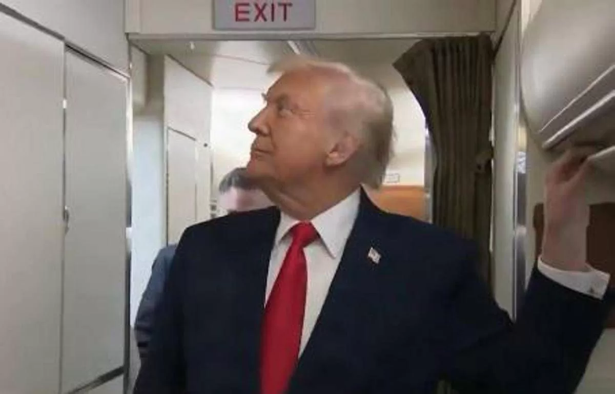 Pochi secondi dopo, è stato colpito accidentalmente dalla porta del bagno mentre qualcuno usciva. Trump inizialmente è sembrato confuso, ma poi ha ironizzato: “Oh, salve. Qualcuno è lì dentro”, ha detto facendo scoppiare a ridere gli altri sull’aereo. “Vieni fuori”, ha aggiunto dopo aver bussato.