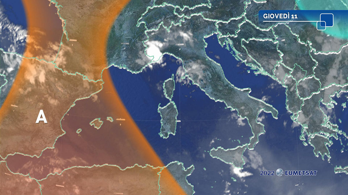 L’Italia continua a essere interessata da una circolazione ciclonica in quota con correnti settentrionali che scorrono ai margini dell’alta pressione posizionata tra l’Europa centrale ed il Mediterraneo occidentale. Con questa configurazione la massa d’aria sul nostro Paese rimane un po’ instabile, con effetti oggi ancora presenti tra il basso Lazio, parte del Sud e le Isole, e le temperature si mantengono su valori estivi ma contenuti con punte per lo più sotto i 32-34 gradi. Domani un nuovo vortice in quota associato a un nucleo di aria più fresca (perturbazione n. 2 del mese) si affaccerà al Nordest per poi scivolare sabato lungo la penisola: in questo suo movimento rinnoverà condizioni di instabilità con gli episodi temporaleschi più probabili nelle Alpi orientali, nel nord della Sardegna e sul medio e basso versante tirrenico.