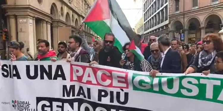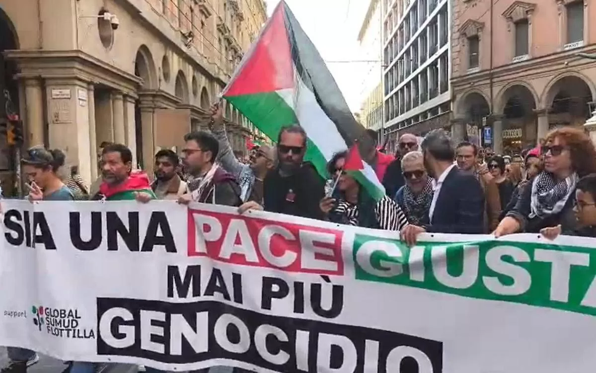 A Bologna il corteo a sostegno della Palestina è partito da piazza dei Martiri a Bologna. Intervengono alla manifestazione anche alcuni membri della Global Sumud Flotilla: il presidente dell’Ucoii Yassine Lafram, le bolognesi Sara Masi e Irene Soldati e la portavoce italiana della missione umanitaria Maria Elena Delia. Presenti a livello locale anche Pd, Cgil, Fiom, Usb, Anpi e Potere al Popolo.