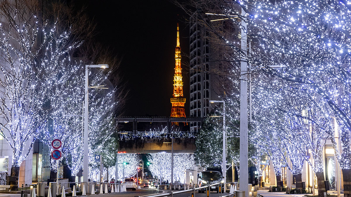 Anche Roppongi Hills si veste di luce: come ogni anno, gli alberi di zelkova lungo la via Keiyakizaka si caricano di filari luminosi, creando una cornice intorno alla Tokyo Tower, che appare in fondo alla discesa. La passeggiata per Roppongi Hills può proseguire per Roku-Roku Plaza, per ammirare l’albero di Natale di 8 metri allestito da Cartier, e il Giardino Mohri, che per l’occasione delle feste è avvolto da un oceano sfavillante di illuminazioni blu.