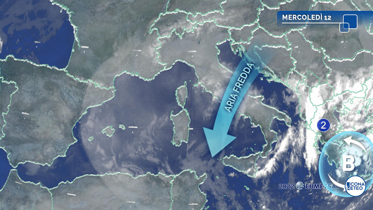 Temperature: minime stazionarie o in lieve aumento ma ancora diffusamente sottozero al Nord, eccetto sulla riviera ligure; in calo nelle regioni centrali. Massime in lieve calo al Sud, in rialzo sulle Alpi e in Sardegna. Le temperature restano al di sotto della norma sul medio Adriatico e in gran parte del Sud.
