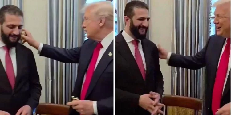 (Adnkronos) – “Ti piace?”. In occasione della sua prima storica visita alla Casa Bianca, il leader siriano Ahmed al-Sharaa ha ricevuto in dono da Donald Trump una bottiglia del suo profumo da uomo “Victory 45-47”. In un video rilanciato da Al Arabiya, si vede il presidente americano spruzzare direttamente la fragranza addosso ad al-Sharaa, assicurandogli che si tratta della “migliore fragranza da uomo”.